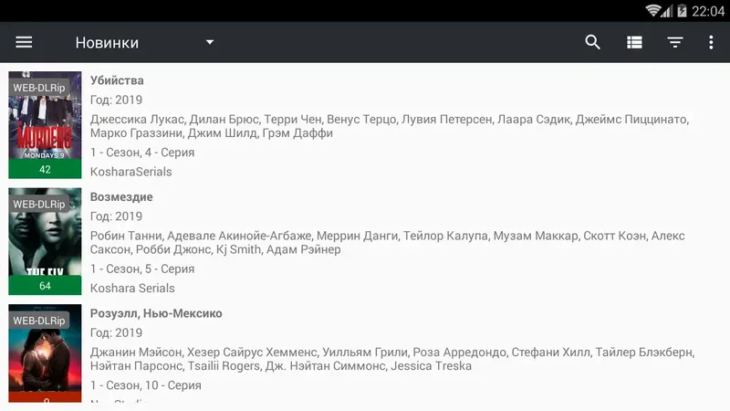 - Поддержка сериалов с выбором сезонов и эпизодов