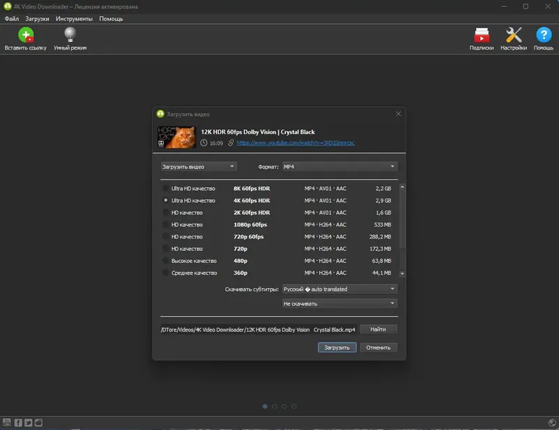 - Автоматический подбор качества видео в зависимости от скорости интернета