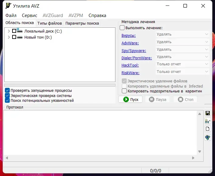 AVZ подходит для комплексной защиты системы и устранения сложных угроз без необходимости установки дополнительных антивирусных решений.