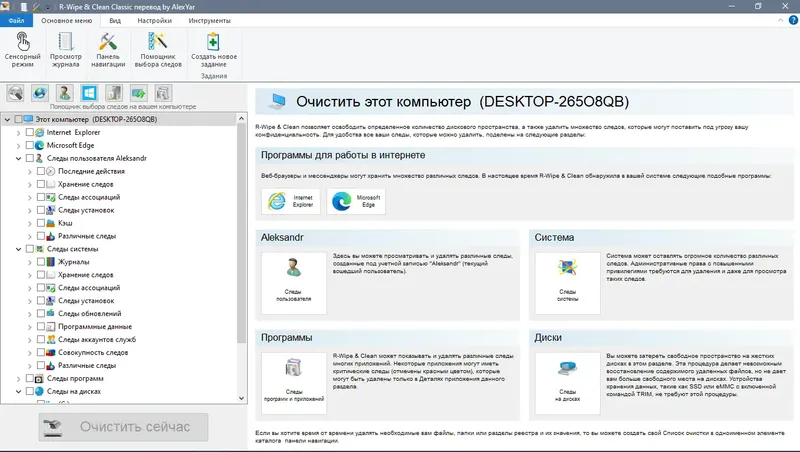 R-WipeClean — это универсальный инструмент для очистки системы от ненужных файлов и следов активности. Он поддерживает работу с файлами системных журналов, временными файлами, кешем браузеров и приложений, а также удаляет остатки программного обеспечения и системных компонентов. Благодаря автоматизированным задачам и гибким настройкам, программа обеспечивает эффективную защиту приватных данных и повышает производительность компьютера.