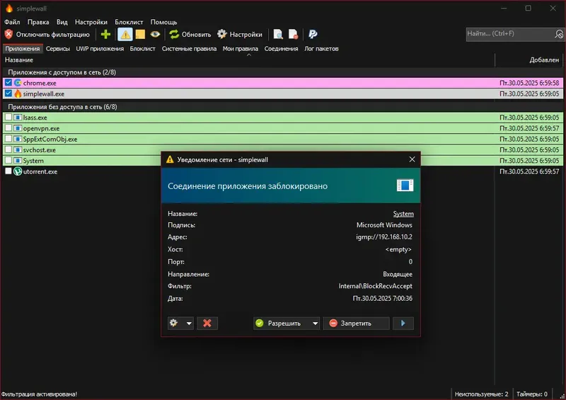 Simplewall — это надежный инструмент для защиты компьютера от нежелательного сетевого трафика и слежки, который легко скачать с официального сайта.