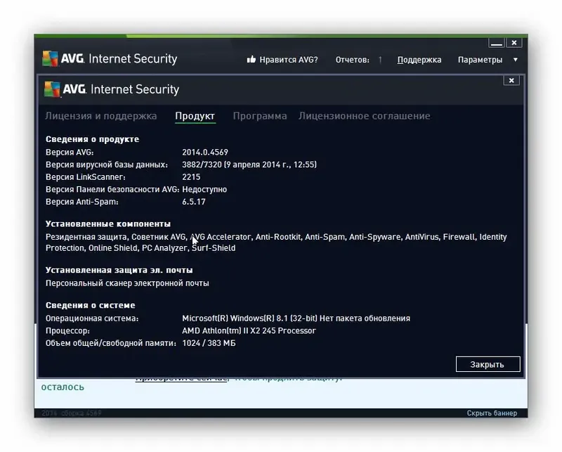 Описание AVG Internet Security