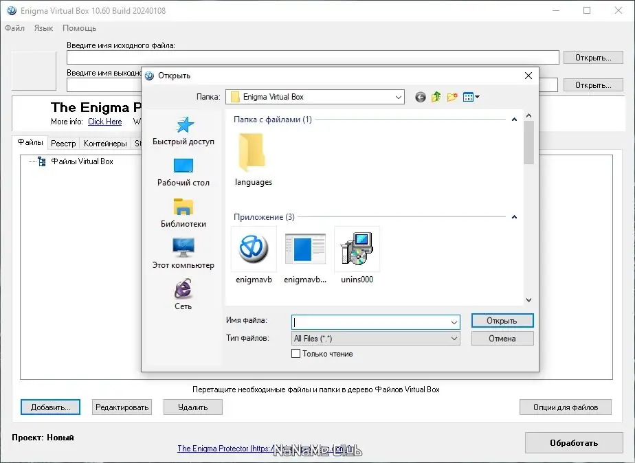 Enigma Virtual Box — это бесплатная антивирусная утилита, которая обеспечивает эффективную виртуализацию приложений без необходимости извлекать файлы на диск или создавать временные файлы. Благодаря использованию внутренней памяти процесса, программа позволяет объединить все компоненты приложения в один компактный исполняемый файл, значительно уменьшая его размер и повышая безопасность. Этот инструмент подходит для создания портативных решений, что делает его востребованным среди разработчиков и системных администраторов.