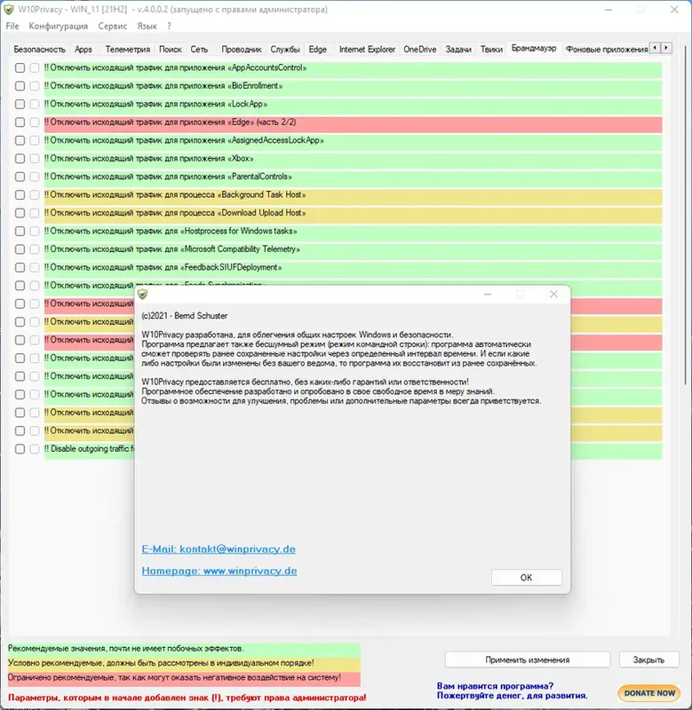 - Блокировка доступа к интернету для отдельных программ