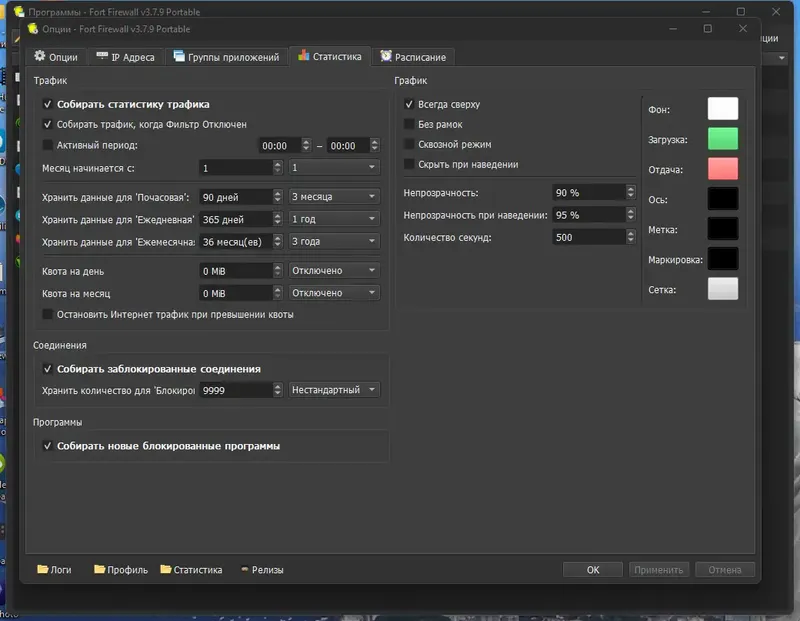 - Графики и статистика трафика для анализа