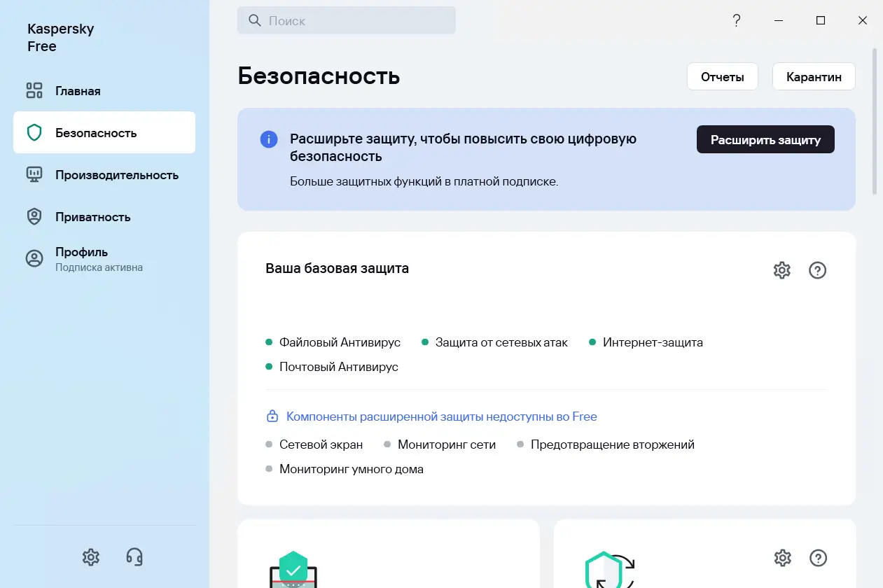 Преимущество Kaspersky Free — это баланс между высокой степенью защиты и удобством использования, что делает его одним из лучших решений в бесплатной категории антивирусов.