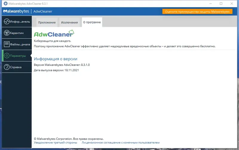 Описание Malwarebytes AdwCleaner