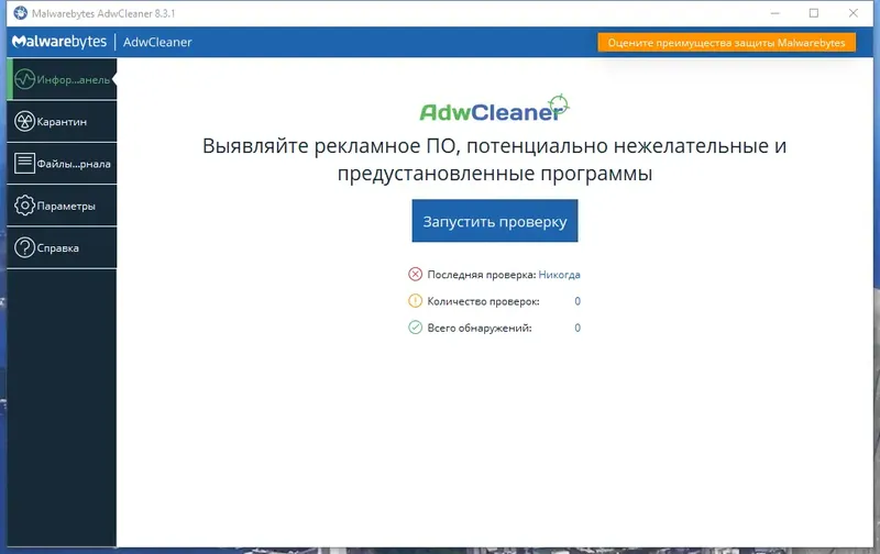 Как пользоваться Malwarebytes AdwCleaner