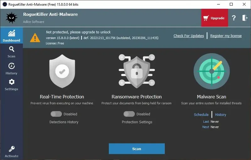 RogueKiller Anti-Malware отличается высокой точностью в обнаружении угроз и широким набором инструментов для их устранения. Благодаря наличию дополнительных платных функций, программа обеспечивает надежную защиту в режиме реального времени и более тонкую настройку системы безопасности. Однако, бесплатная версия ограничена в возможностях автоматической защиты и обновлений, что может снизить эффективность при постоянных угрозах.