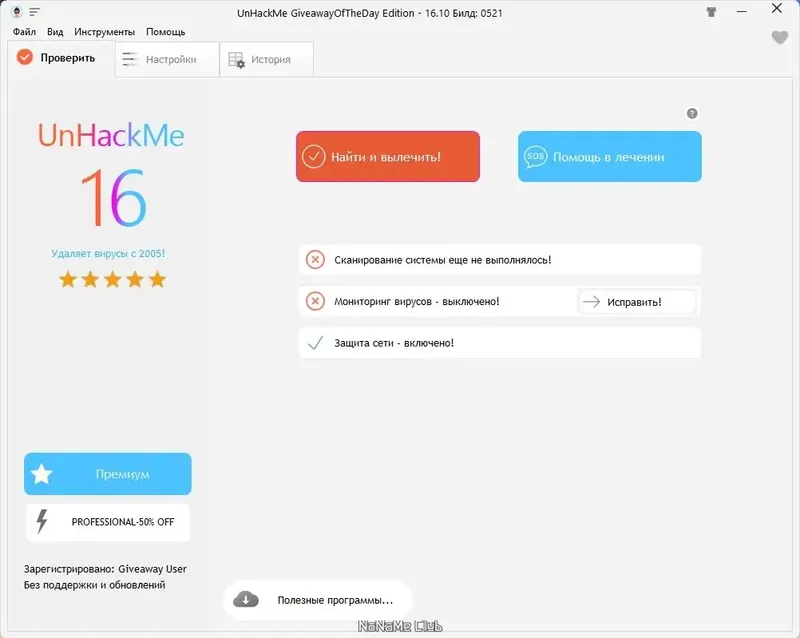 UnHackMe обеспечивает надежную защиту от сложных вредоносных программ и помогает поддерживать безопасность компьютера.