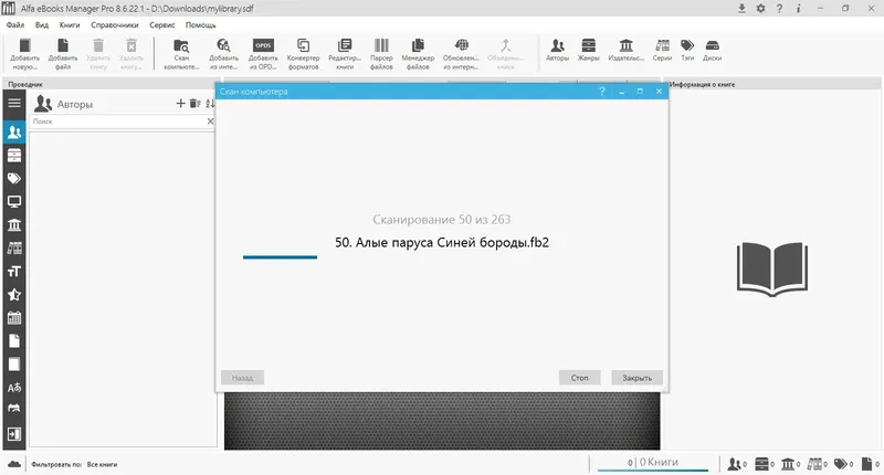 Alfa eBooks Manager — одна из самых популярных программ для управления книгами, которая позволяет упорядочить как электронные, так и бумажные издания. Благодаря встроенной функции сканирования, программа автоматически находит книги на вашем компьютере, извлекает метаданные и добавляет их в библиотеку. Удобный интерфейс и расширенные возможности редактирования делают управление коллекцией простым и эффективным. Кроме того, программа поддерживает работу с различными форматами, включая PDF, EPUB, MOBI, FB2, DJVU, а также аудиокниги в форматах MP3 и M4B.