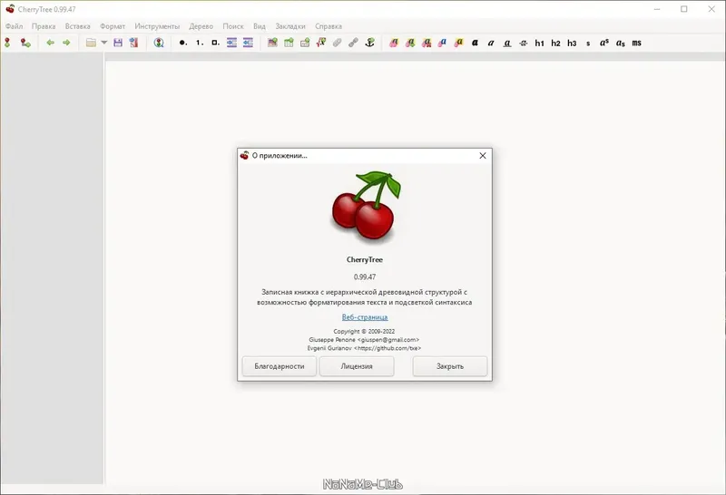CherryTree — универсальная программа для ведения заметок и структурированного хранения информации. Она подходит как для личных целей, так и для профессиональной работы с большими объемами данных. Благодаря поддержке русского языка и интуитивно понятному интерфейсу, программа легко осваивается и позволяет быстро организовать любые заметки.