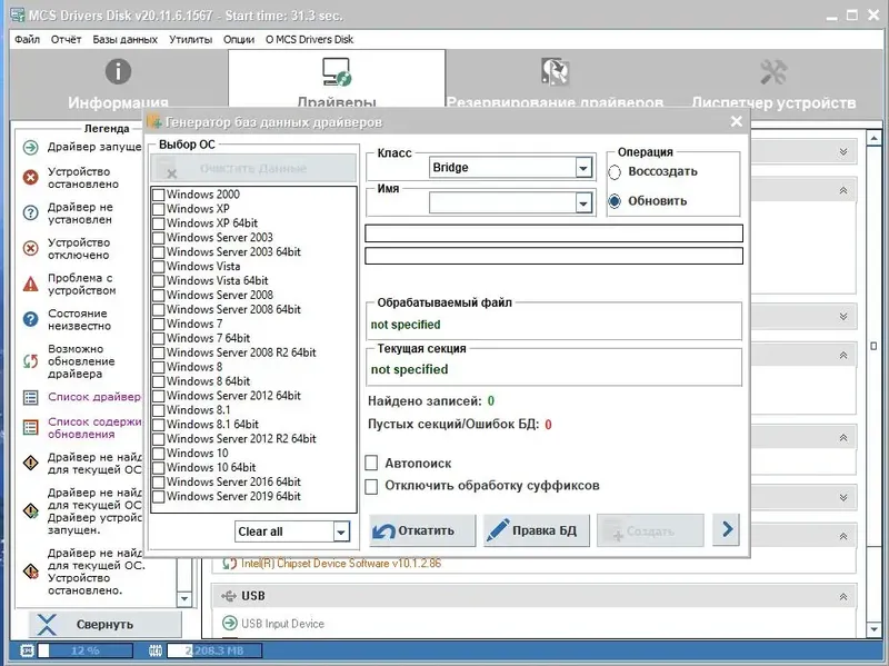 МCS Drivers Disk — это универсальный сборник драйверов, предназначенный для быстрого и удобного обновления или восстановления устройств на компьютере. Программа автоматически определяет необходимые драйверы и позволяет установить их всего за несколько кликов. Это особенно полезно при переустановке системы или работе с устаревшим оборудованием, обеспечивая стабильную работу и совместимость.