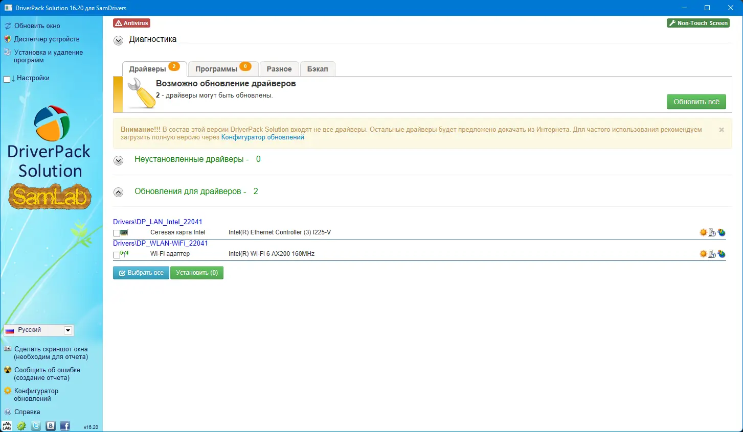 - Обновление только актуальных драйверов для сетевого оборудования.