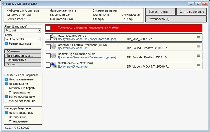 - Обновленная база драйверов, включающая последние версии 2025 года.