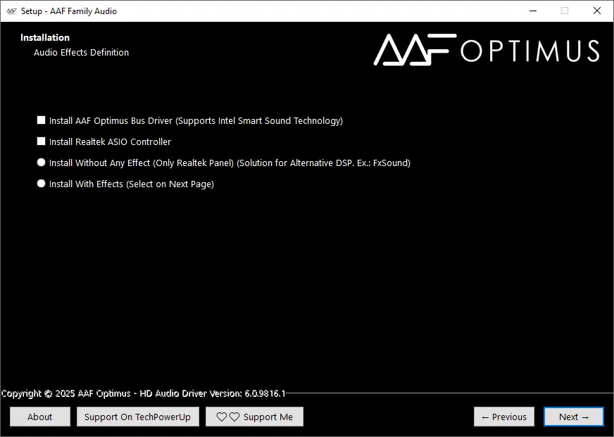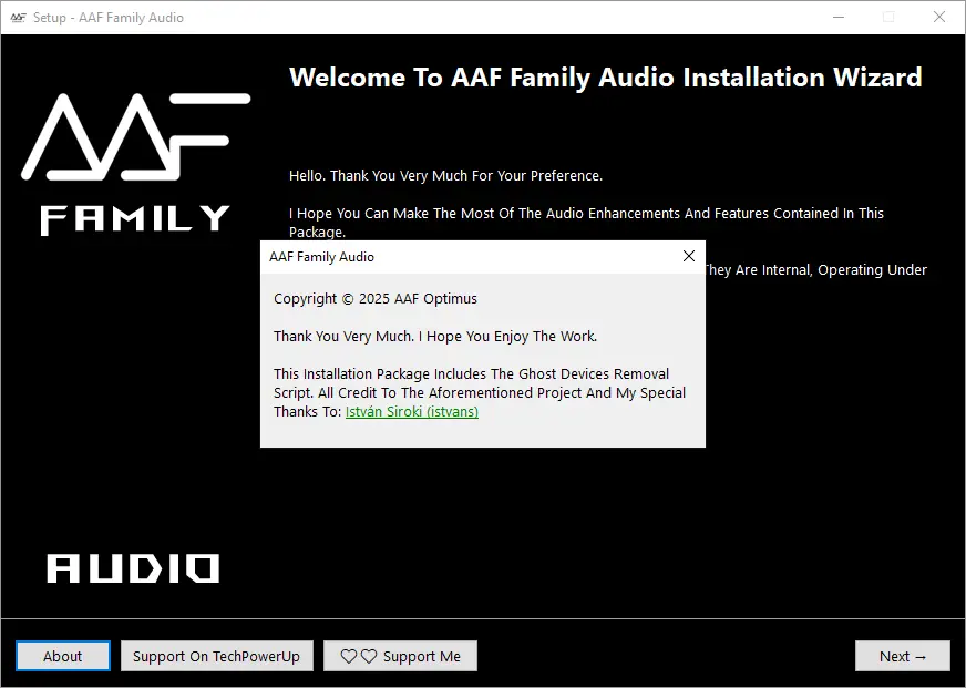 AAF Family DCH Audio Realtek — это комплексный модифицированный драйвер для звуковых карт с чипами Realtek, который позволяет значительно расширить возможности встроенного аудио. В составе программы доступны такие популярные технологии, как Dolby Atmos, DTS:X Ultra, Nahimic, Sonic Studio и ICE Sound, что обеспечивает высококачественную обработку звука и эффектов. Установка данного пакета дает возможность управлять настройками через удобную панель и получать насыщенный, объемный звук, подходящий как для развлечений, так и для профессиональной работы со звуком.
