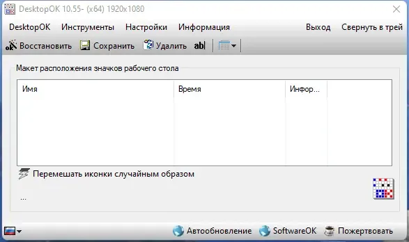 Для использования DesktopOK достаточно скачать программу с официального сайта и запустить ее — установка не требуется благодаря портативной версии. После запуска программа автоматически отображает системное меню, где можно сохранить текущие расположения значков или восстановить ранее сохраненные макеты. В настройках можно задать автоматическое сохранение при изменениях или запускать функцию восстановления вручную. Для быстрого доступа предусмотрен системный лоток, где легко найти необходимые функции. Также программа позволяет управлять отображением иконок и их размером, что делает работу с рабочим столом максимально комфортной.