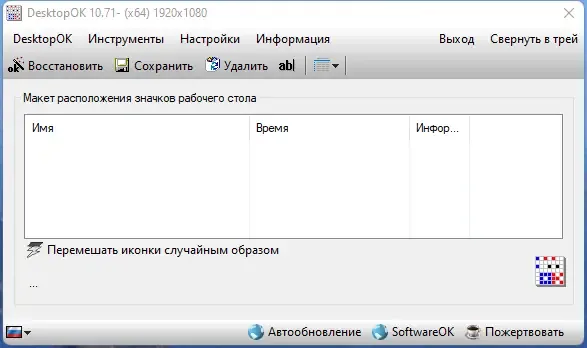 DesktopOK — это универсальный инструмент для сохранения и восстановления расположения значков и элементов рабочего стола Windows. Он позволяет сохранять макеты для различных разрешений экрана, что особенно актуально для пользователей, часто меняющих настройки дисплея или использующих проекторы. Программа обладает портативной структурой, что делает ее удобной для использования на разных компьютерах без необходимости установки. Помимо этого, DesktopOK поддерживает автоматическое сохранение макета и изменение размера значков, обеспечивая полный контроль над интерфейсом рабочего стола.