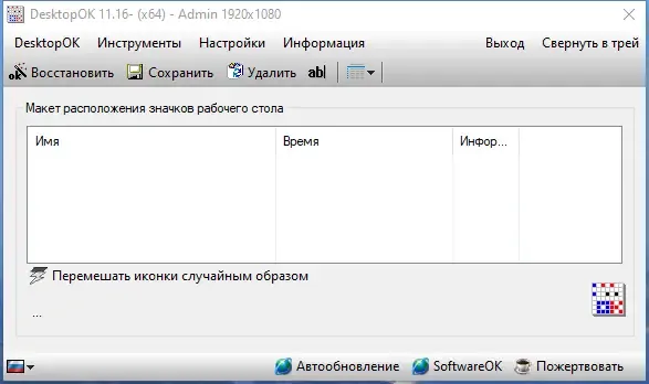Программа позволяет быстро восстанавливать порядок значков после изменений разрешения или работы с проектором.