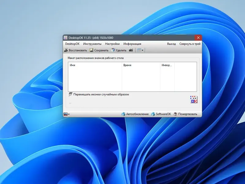 DesktopOK — это небольшая, но очень полезная программа, предназначенная для сохранения и восстановления расположения иконок на рабочем столе. Она подойдет для пользователей Windows 10, Windows 11 и более ранних версий, которым приходится часто менять разрешение экрана или подключать различные внешние устройства. Программа позволяет сохранять макеты для разных разрешений и профилей пользователей, что значительно упрощает работу с множеством настроек и конфигураций. Ее основная функция — автоматическое восстановление порядка иконок после изменений в настройках экрана или после перезагрузки системы, что особенно актуально для геймеров, дизайнеров и системных администраторов. Возможность автоматического скрытия и отображения значков, а также сворачивания всех окон делает DesktopOK универсальным инструментом для поддержания порядка и удобства работы.