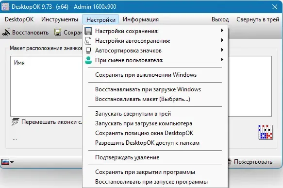 - Автоматическое и ручное сохранение макета рабочего стола