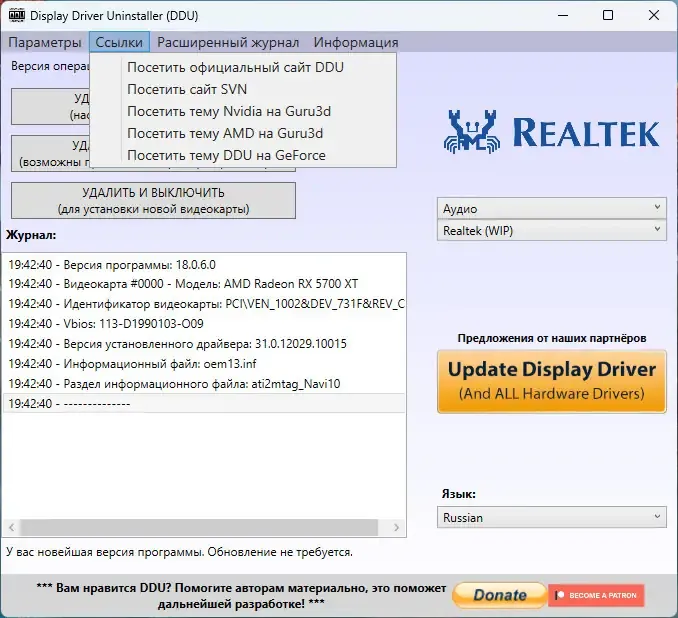 Display Driver Uninstaller — это универсальный инструмент для удаления драйверов видеокарт и звуковых устройств без следов. Он особенно полезен при возникновении ошибок при обновлении драйверов или необходимости их полного удаления, например, перед установкой новых версий. Программа позволяет проводить очистку системы, как при чистой установке Windows 10, так и при сложных ситуациях, когда стандартные методы не справляются. Благодаря автоматическим обновлениям и простому интерфейсу она подходит как для опытных пользователей, так и для новичков, желающих обеспечить стабильную работу системы.