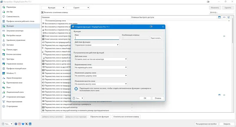 - Настраиваемые горячие клавиши для быстрого управления окнами и фонами