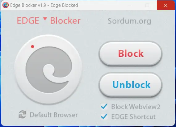 Edge Blocker — это бесплатная портативная утилита, предназначенная для блокировки браузера Microsoft Edge на компьютерах с операционной системой Windows. Простое и удобное в использовании приложение позволяет быстро отключить встроенный браузер, что особенно актуально для пользователей, предпочитающих сторонние решения или желающих повысить безопасность системы. После запуска программы пользователю доступна возможность мгновенно заблокировать или разблокировать Microsoft Edge без необходимости установки или сложных настроек.