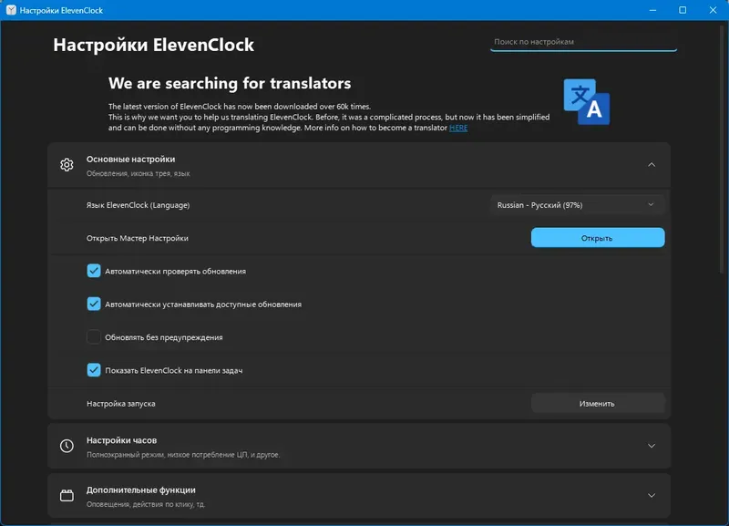 ElevenClock значительно расширяет возможности стандартных часов Windows 11, делая их более функциональными и настраиваемыми.