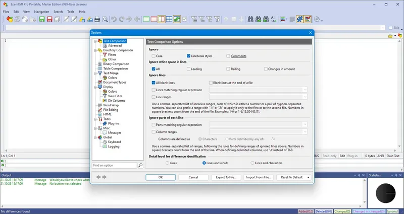 Для начала работы с ExamDiff необходимо установить программу или распаковать портативную версию. После запуска пользователь выбирает файлы или директории для сравнения, используя интерфейс или функцию Drag & Drop. В процессе сравнения можно добавлять ручные синхронизационные точки, редактировать файлы непосредственно внутри программы и сохранять результаты в различных форматах. Также доступна интеграция с проводником Windows для быстрого вызова сравнения. В настройках можно отключить автоматическую проверку обновлений и настроить интерфейс по своему вкусу. Для более точного анализа доступны расширенные функции поиска, фильтры и создание снимков директорий, что делает процесс сравнения максимально эффективным и гибким.