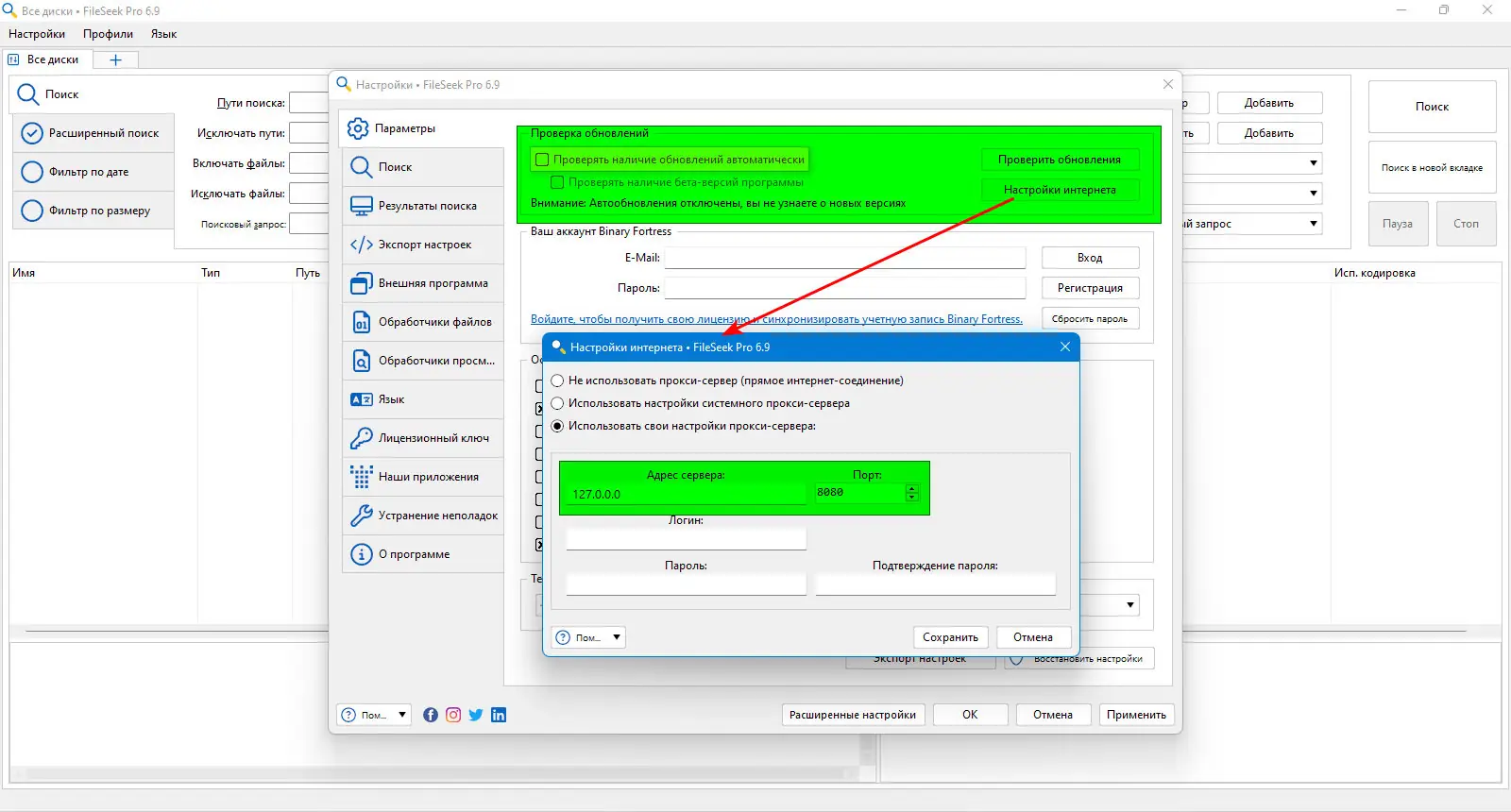 Для начала работы с программой необходимо установить её на компьютер и запустить в бесплатном режиме. После запуска пользователь может указать папки для поиска и задать необходимые параметры, используя простые запросы или регулярные выражения. В настройках можно отключить автоматическое обновление и задать прокси-сервер, что важно для корректной работы и избежания ошибок с лицензионным ключом. Для активации профессиональной версии потребуется сгенерировать лицензионный ключ с помощью кейгена, вставить его в соответствующее поле и подтвердить. После этого программа автоматически синхронизирует настройки и готова к работе в расширенном режиме. В процессе поиска результаты можно сохранять, экспортировать или выполнять с ними стандартные операции, такие как копирование или удаление.
