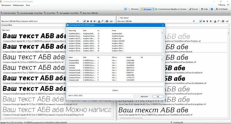 FontViewOK помогает выбрать наиболее подходящий шрифт для любого проекта, обеспечивая удобство и точность при работе с типографикой.