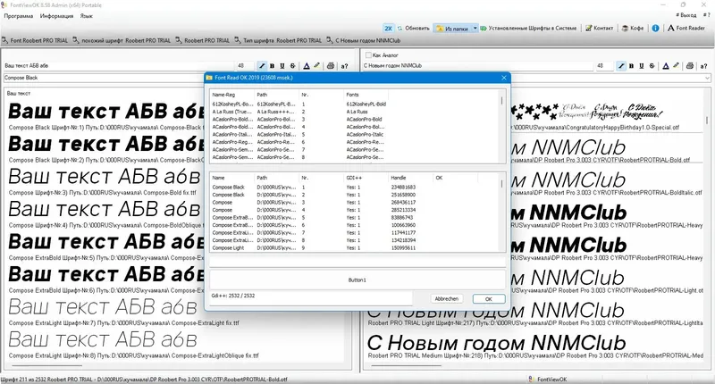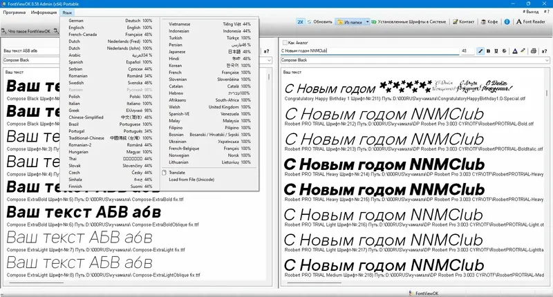 FontViewOK — это легкая и универсальная утилита, предназначенная для визуализации и тестирования различных шрифтов. Она отлично подходит для дизайнеров, верстальщиков и всех, кто работает с текстовыми элементами. Программа отображает все установленные в системе шрифты и предоставляет возможность мгновенного просмотра выбранного текста в выбранном стиле. Удобный интерфейс и возможность сравнения двух шрифтов в реальном времени делают ее незаменимым инструментом для профессионалов и любителей.