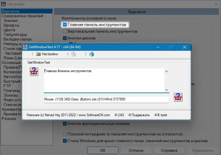 GetWindowText — это портативное программное обеспечение, предназначенное для извлечения текста из оконных элементов, таких как деревья каталогов, списки, комбобоксы и другие интерфейсные компоненты. Она позволяет пользователям легко перетаскивать значок программы на нужный элемент, после чего в окне программы отображается результат. Это значительно упрощает процесс автоматизации и анализа интерфейса, а также подходит для работы в различных средах и системах Windows.