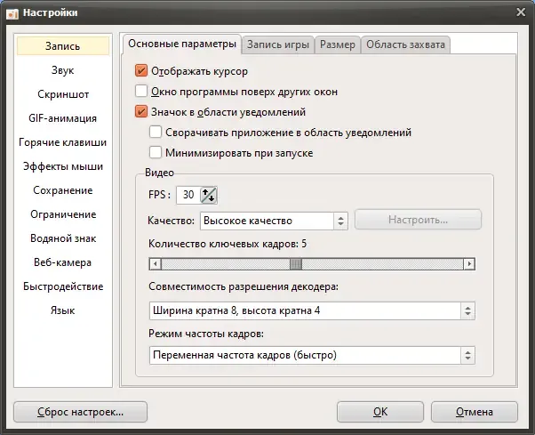 - Запись и кодирование видео в популярные форматы, включая GIF и MP4