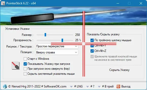 - Легкая настройка размера указки и прозрачности для комфортной работы.