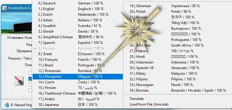 Для начала работы с PointerStick достаточно запустить программу — указка автоматически превратится в крупную, яркую стрелку. В настройках пользователь может изменить размер и прозрачность указки, а также выбрать текстуру из предложенного набора. Переключение между активным и скрытым состоянием осуществляется нажатием на горячие клавиши, что позволяет быстро адаптировать указку под текущие условия презентации. Все параметры сохраняются в.ini файле, что обеспечивает удобство и повторяемость настроек при повторных запусках. Программа полностью портативна и может быть перенесена на любой носитель без необходимости установки.