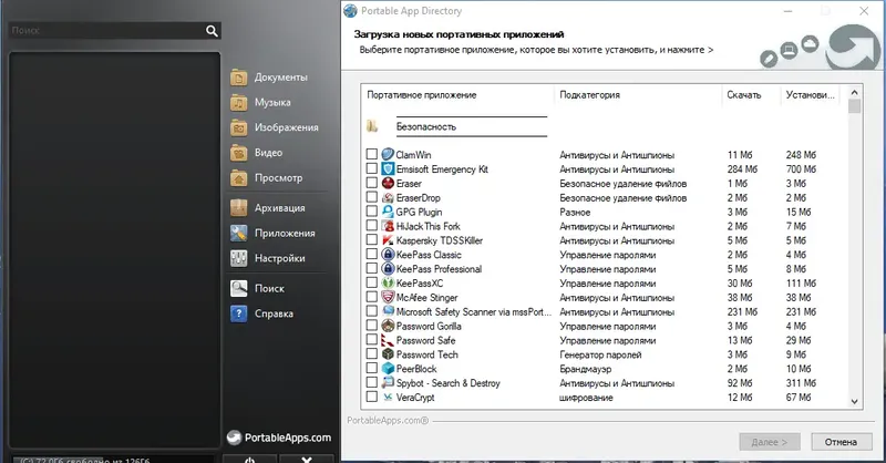 - Организация портативных приложений в едином меню для быстрого доступа