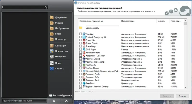 - Удобное управление множеством портативных приложений в одном интерфейсе.