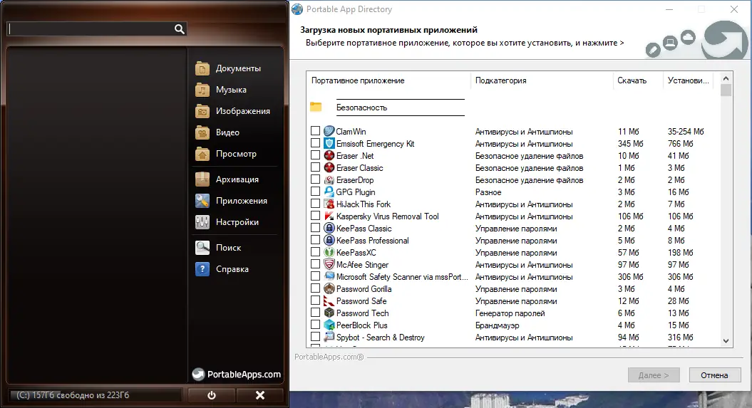 - Удобное управление портативными приложениями