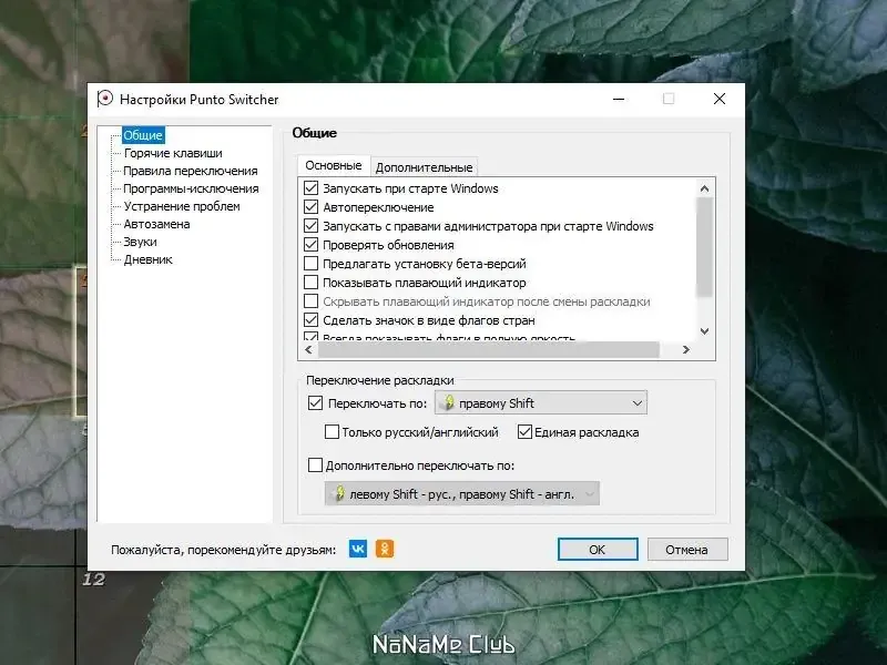- Настраиваемые горячие клавиши для смены языка
