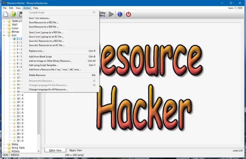 Resource Hacker — это мощное и одновременно простое в использовании приложение, предназначенное для работы с ресурсами Windows-исполнителей. Благодаря интуитивно понятному интерфейсу и широкому набору функций, оно позволяет просматривать, извлекать, изменять и добавлять ресурсы в файлах форматов *.exe, *.dll, *.cpl, *.ocx и *.res. Программа идеально подходит для тех, кто хочет как поменять иконку в файле, так и полностью изменить интерфейс или перевести программу на другой язык. Кроме того, Resource Hacker может быть использован для быстрого удаления ненужных ресурсов, что способствует уменьшению размера файла и повышению производительности приложений.