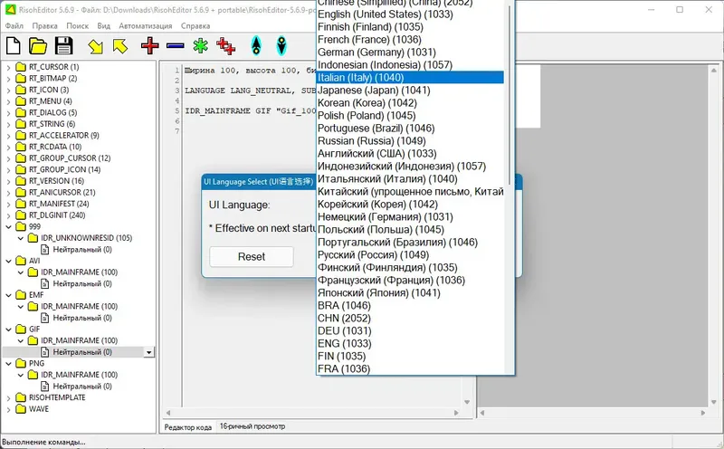 RisohEditor — это бесплатный редактор ресурсов для платформы Windows, разработанный японским программистом Katayama Hirofumi MZ. Он предназначен для удобного редактирования, извлечения и управления ресурсами в файлах EXE, DLL, RC и RES. Программа подходит как для профессиональных разработчиков, так и для энтузиастов, желающих модифицировать или создавать интерфейсы и элементы Windows. Благодаря поддержке нескольких языков интерфейса, RisohEditor становится универсальным инструментом для работы с ресурсами различных проектов и систем.