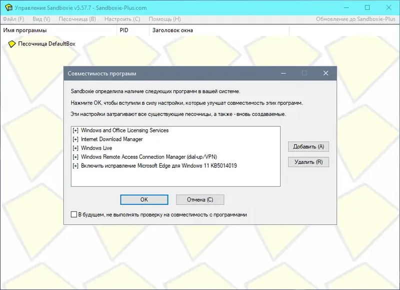 Использование Sandboxie помогает снизить риски заражения компьютера вредоносным ПО и обеспечить контроль над всеми действиями программ.