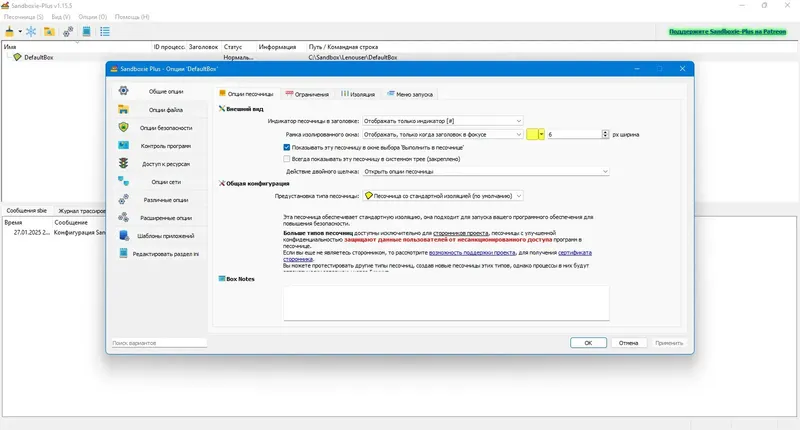 Sandboxie plus — это современная программа для защиты системы, которая позволяет запускать приложения в изолированной среде, предотвращая вредоносное воздействие на операционную систему. Она обеспечивает контроль за работой программ, удаление следов их работы и блокировку нежелательных процессов. Благодаря песочнице пользователь может безопасно тестировать новые программы и посещать опасные сайты, не боясь навредить системе. Программа подходит как для продвинутых пользователей, так и для тех, кто ценит безопасность и конфиденциальность в работе с Windows.