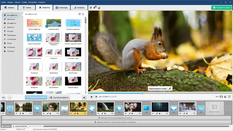 - Редактор звука внутри программы без необходимости сторонних редакторов