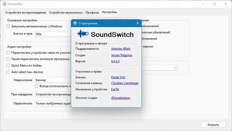 SoundSwitch — это универсальный инструмент для управления звуковыми устройствами, который позволяет легко переключаться между ними без лишних усилий. Он подходит для различных сценариев: от домашнего использования до профессиональной студийной работы. Программа поддерживает множество языков, включая русский, и может быть настроена под индивидуальные предпочтения пользователя. Благодаря поддержке Windows 10 и Windows 11, а также возможности автоматического запуска при загрузке системы, SoundSwitch обеспечивает максимальный комфорт и эффективность работы с аудиоустройствами.