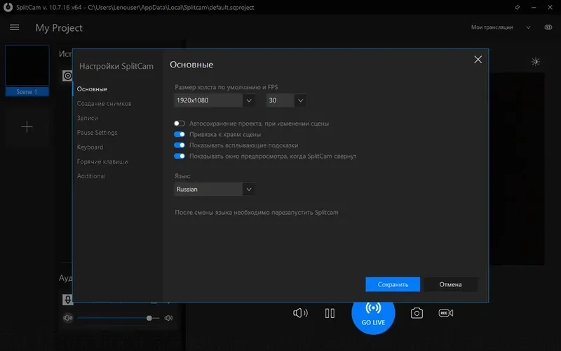 - Поддержка различных источников видео, включая видеофайлы и слайд-шоу