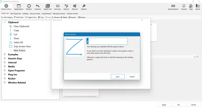 StrokesPlus.net — это мощная и бесплатная утилита для автоматизации и распознавания жестов мыши в операционной системе Windows. Она позволяет создавать индивидуальные жесты для быстрого выполнения различных команд, что значительно ускоряет работу и повышает продуктивность. Благодаря расширенным возможностям настройки и интеграции с скриптами, программа подходит как для опытных пользователей, так и для новичков, желающих оптимизировать свои действия за компьютером.