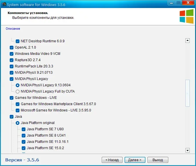 System software — это универсальный инструмент для быстрого и безопасного обновления системных компонентов Windows, необходимых для корректной работы современных игр и приложений. Она включает в себя широкий набор библиотек и runtime, таких как DirectX, NET Framework, Java Platform и PhysX, что обеспечивает совместимость и стабильность работы программного обеспечения. Удобный инсталлятор позволяет выбрать необходимые компоненты и выполнить установку в автоматическом режиме, что значительно облегчает подготовку системы к запуску требовательных игр, мультимедийных приложений и программ для разработки.